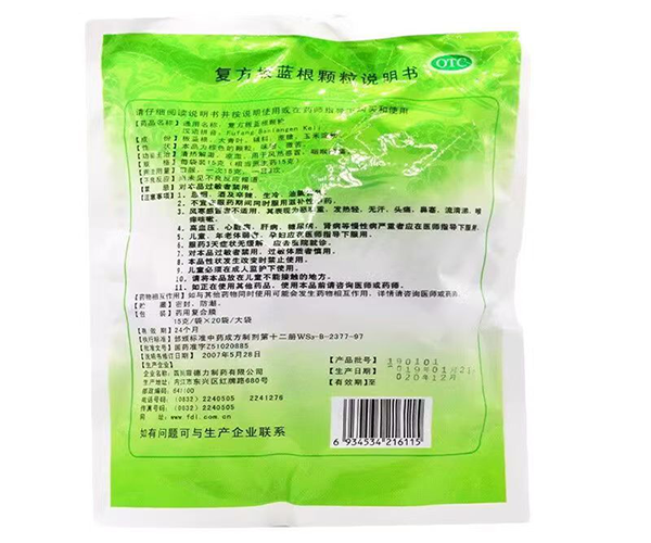 Banlangen keli (板蓝根颗粒) est une boisson naturelle à base de plantes, puissante et reconnue pour ses bienfaits. Ses principaux ingrédients sont la racine et la feuille d'Isatidis, qui soutiennent la santé respiratoire, renforcent le système immunitaire et favorisent le bon fonctionnement des glandes. Elle est utilisée pour traiter et prévenir les affections respiratoires telles que le rhume et la grippe, ainsi que les maladies respiratoires d'origine virale comme la grippe.
